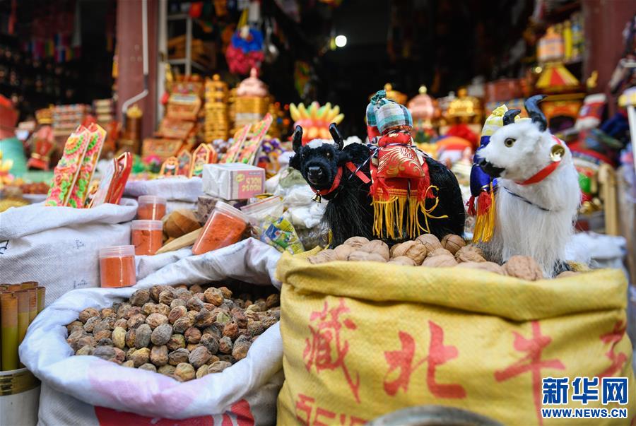 1月12日在西藏那曲年货市场内拍摄的牦牛吉祥物摆件。新华社记者 刘东君摄