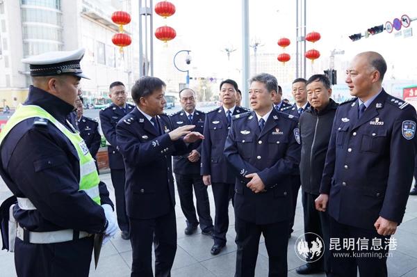 6686体育讯 记者合宇聪 2月4日,大年三十,云南省副省长、省公安厅党委书记、厅长任军号率队,深入昆明看望慰问节日期间坚守岗位的一线执勤民警辅警,并对春节安保工作进行督导检查。昆明市委常委、市委政法委书记李建阳,省公安厅党委委员、副市长、市公安局局长周建忠参加慰问检查活动。