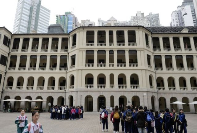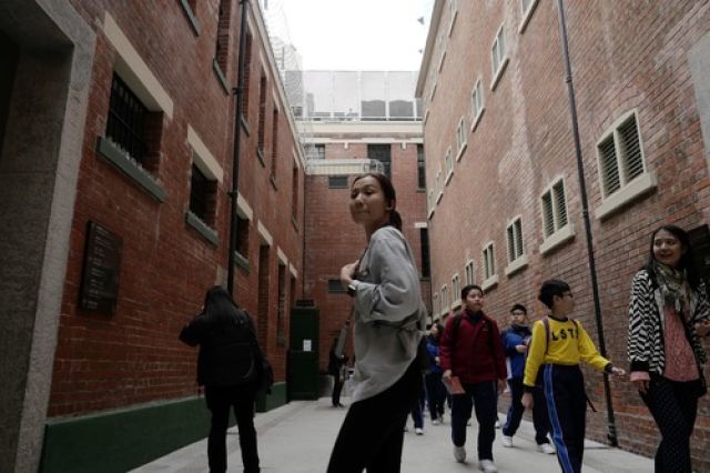 在香港港岛,旅客在参观前身为中区警署建筑群的“大馆”。新华社记者王申摄
