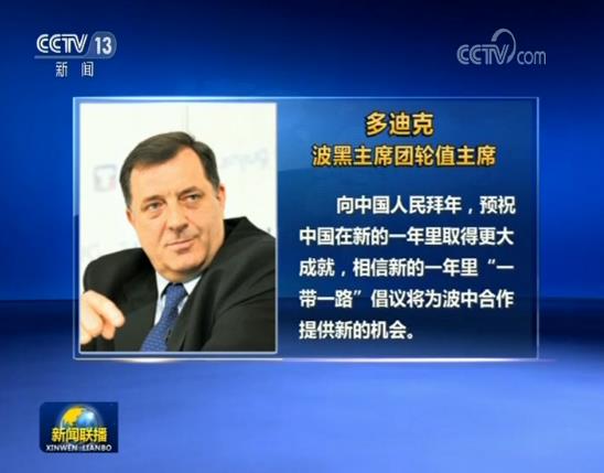 波黑主席团轮值主席多迪克向中国人民拜年,预祝中国在新的一年里取得更大成就,相信新的一年里“一带一路”倡议将为波中合作提供新的机会。