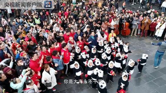 央视记者蒋林带着一群“熊猫宝宝”加入快闪行动,欢乐、青春、激情……各种情绪汇聚,现场成了一片歌声的海洋。