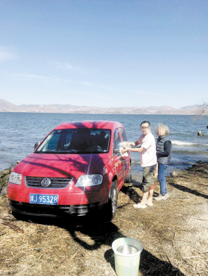游客在洱海边违规洗车洗衣。网络图