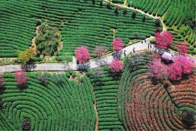 良好的生态环境是最公平的公共产品,是最普惠的民生福祉。图为游客在福建省漳平市一处樱花茶园内游览。新华社发