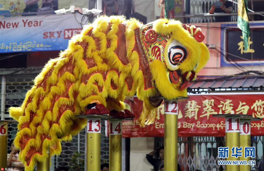 当地时间2019年2月7日,缅甸仰光,当地举行舞狮大赛,庆祝中国农历新年。(新华网)