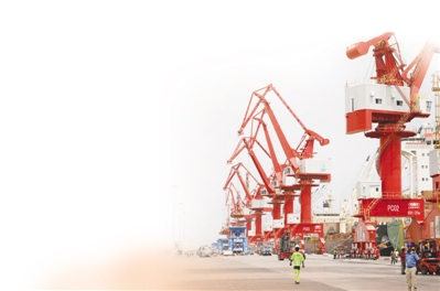 由中资企业投资兴建的吉布提多哈雷多功能港口的繁忙景象。记者吕强/摄