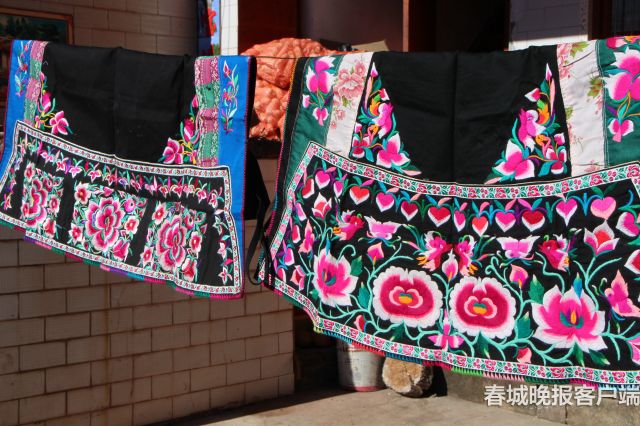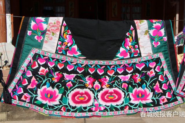 离开村庄时,院里的大黑狗已和来人熟络了,尘土飞扬中追着车跑了很远,似乎是在送别。字勤飞和朋友仍然坐在小院里绣着围裙,夕阳从天上斜斜地穿过来,为手里的绣线镀上了一层金色,她低着头,缝下密密的一针一线,把所有的情感,都倾注到了手里的刺绣上……(春城晚报 记者秦蒙琳 实习生朱婉琪 )