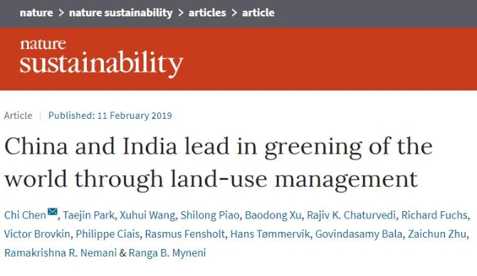 2月11日,《自然》子刊《自然•可持续发展》刊登了题为《中国和印度通过土地利用管理为绿化地球作出贡献》的研究报告,称卫星数据显示地球植被叶面积(green leaf area)正在扩大。