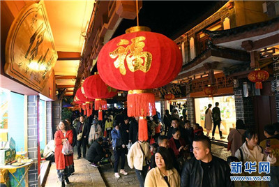 2月12日,游人在丽江古城休闲。 新华社 记者杨宗友/摄