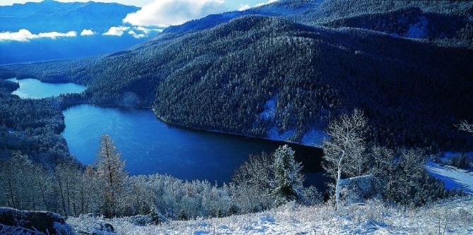 郝沛介绍,双湖位于喀纳斯湖四道湾以西,又被称为加斯库勒湖、仙女姐妹湖。两个小湖串连在一起,幽居崇山峻岭中,湖水清澈碧绿,湖的四周群峰连绵,原始云杉浓荫蔽日,是绝好的生态旅游观光地。