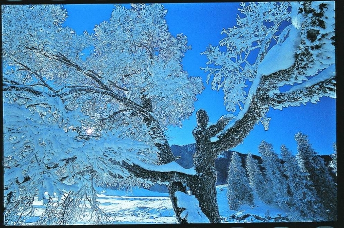 郝沛还拍过布尔津雾凇、喀纳斯雾凇及巴里坤雾凇等。在他看来,虽然都是雾凇,每个地方都有独特的动人之处。