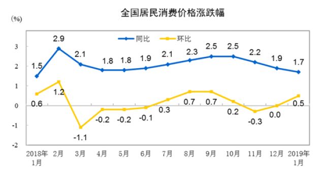 国家统计局:2019年1月CPI同比上涨1.7%