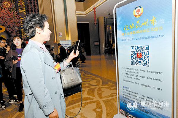 政协委员扫码关注昆明市政协履职通App。记者刘凯达/摄