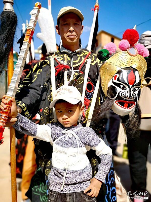 关锁戏第四代传人张飞扮演者带孙子学跳张飞。彩龙社区网友@鹏海洋/图