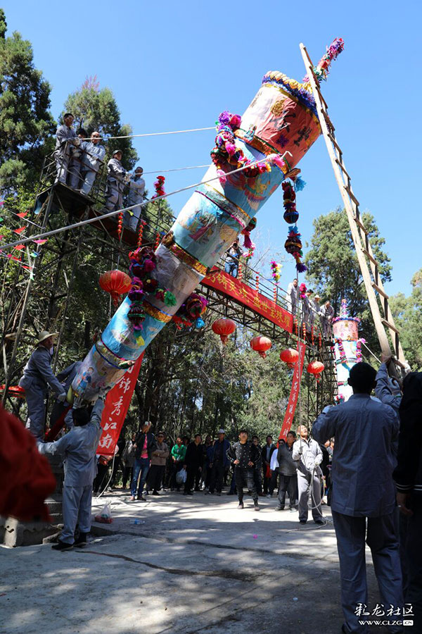 高6.6米、堪称“天下第一高香”的阳宗大香,被搬引、竖立于龙泉古寺门口。彩龙社区网友@李浅川/图