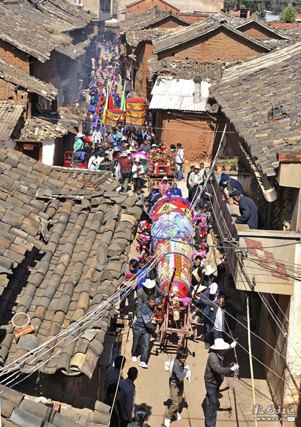 每年阳宗镇数以万计的民众自发组织、同游香队伍绕镇送大香。彩龙社区网友@鹏海洋/图