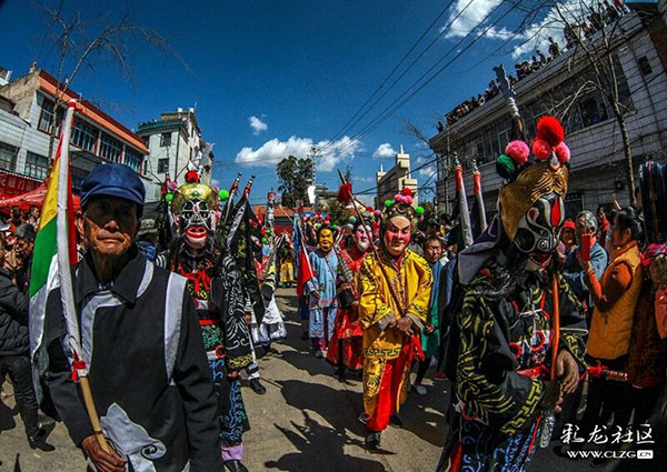 关锁戏村民演员以三国英雄人物身份进行“踩村、踩街、踩家”活动。彩龙社区网友@浩德/图