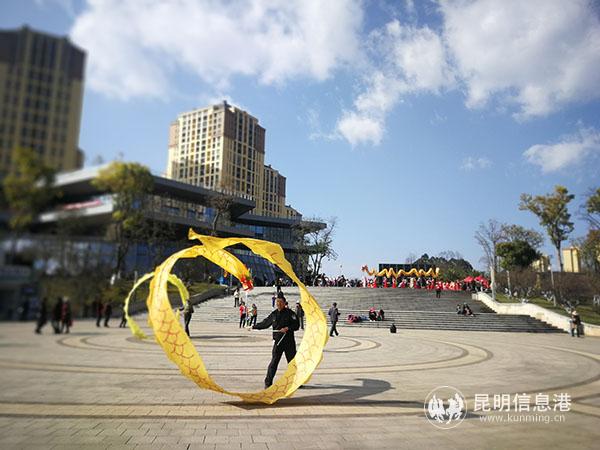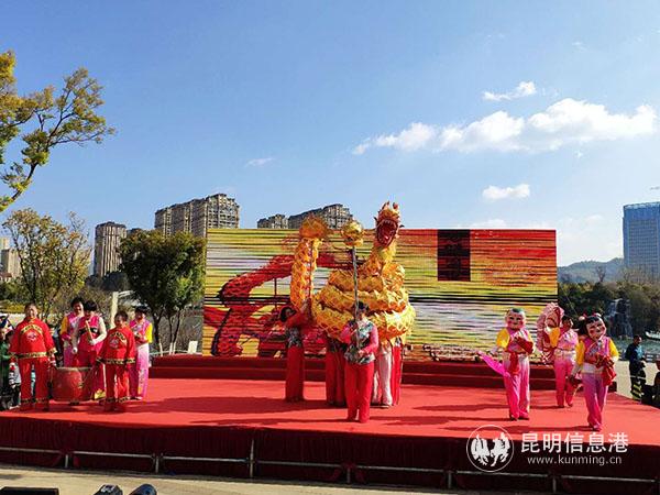 春光明媚盘龙美,金龙腾飞事业兴。上午十点整,舞龙表演《龙腾盛世》拉开了整个活动的序幕。腾飞的蛟龙是团结、勇敢、一往无前精神的象征。龙的心,寄托盘龙人民的新希望,龙的魂,谱写着跨越发展的新篇章。过去一年,盘龙区各族人民团结奋进、攻坚克难、开拓进取,取得了经济社会发展新实绩。在新年伊始,盘龙将继续保持昂扬的斗志,奋发向上、一往无前,努力推动各项事业再上新台阶。
