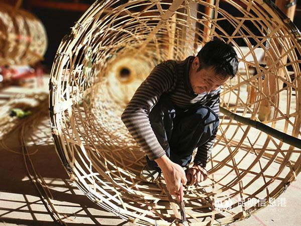 香笼(体)由新县小组村民候有民负责完成。从父亲那里学会编织技艺后,他每年都参与大香制作,这一干就是16年。候有民介绍,一个香笼需要约10颗竹子,香笼不但要牢固,关键还要作成圆形。对于他来说,制作两炷大香的香笼仅需10多天时间便可完成。