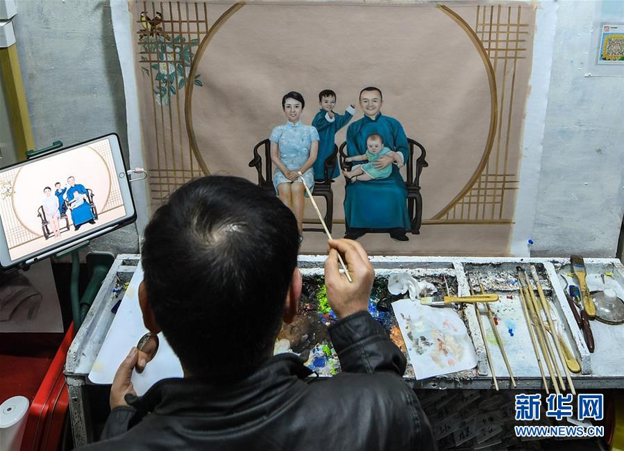 大芬村的一名画师为顾客绘制定制化作品(1月11日摄)。 新华社记者毛思倩/摄