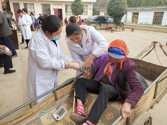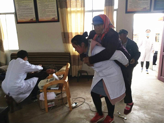 据卫生院医生孙启梅介绍,此次是大井卫生院2019年家庭医生履约服务,结合健康体检、健康扶贫政策宣传、基本公共卫生服务项目等工作在全镇统筹进行进服务,事先经过未雨绸缪的大力宣传动员,群众参与度高。“今天一早,我们来到色关村立即进入工作状态,热情细致地为等待着的老乡们进行健康体检,讲解宣传健康扶贫政策和健康知识,发放宣传资料,为他们答疑解惑。给村里老年人、慢性病患者等151人做了体检,家庭医生履约服务150人。在服务过程,这两个老夫妻赶着牛车来体检,他们的这种夫妻感情让我们很感动!我们的基层女医生背起大妈去检查,又让现场群众觉得很暖心!”(云南网 通讯员徐承宇)