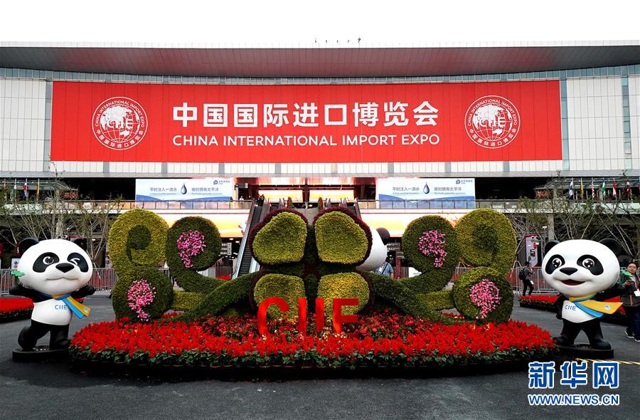 在国家会展中心(上海)场馆外,进博会吉祥物“进宝”准备迎接四方宾客(2018年11月4日摄)。 新华社 记者陈飞/摄