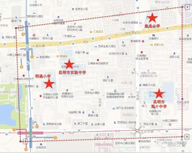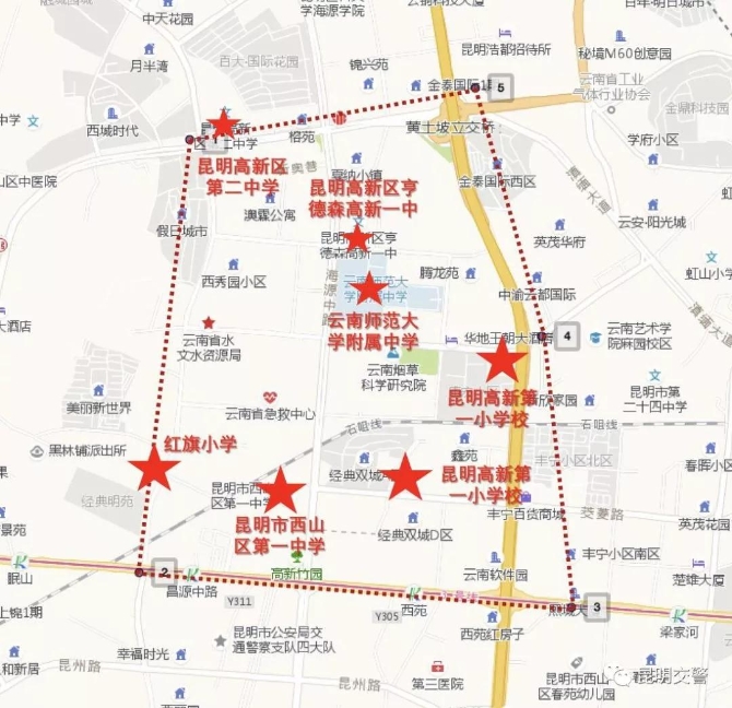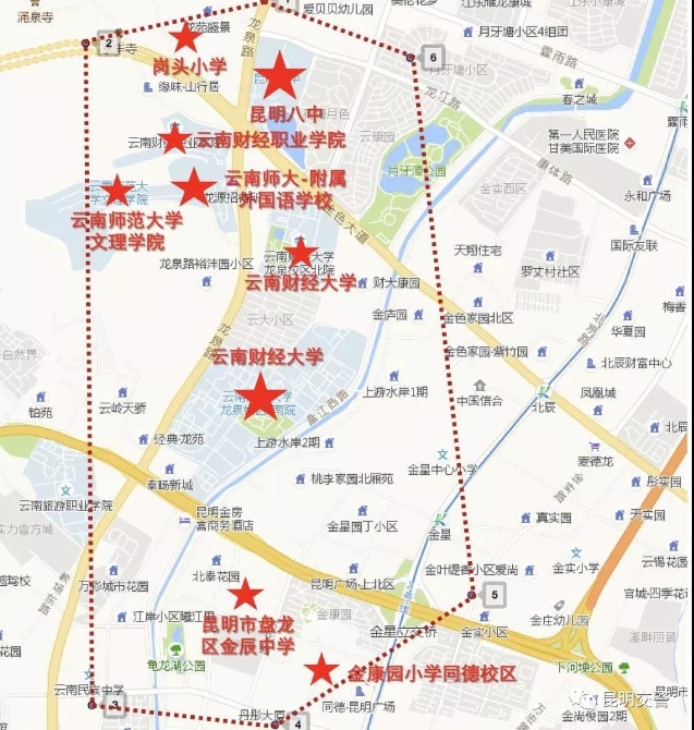 2月22日,@昆明交警发布昆明学校集中区域分布情况:
