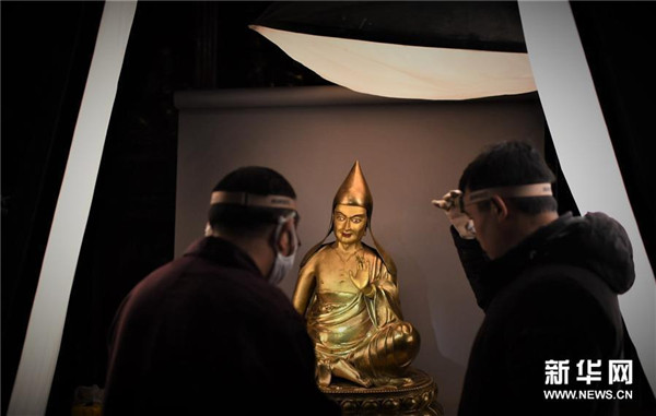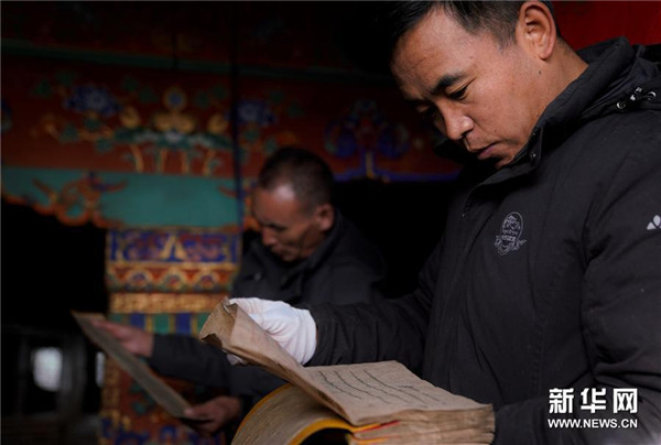 布达拉宫管理处工作人员开展前期古籍文献普查登记工作(2018年11月16日摄)。 (新华社记者 普布扎西 摄)