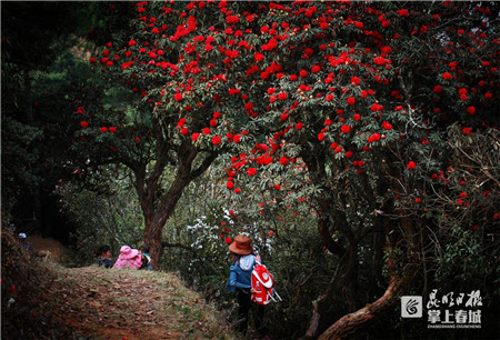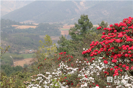 虽是早春二月,可马鞍山因其独特的土壤和气候,山谷内大片大片的樱花已迎风绽放,宛如仙女下凡,亭亭玉立。上千株马缨花在阳光的照耀下千娇百媚,鲜艳欲滴,红色、白色、粉色的花海绵延千亩,蔚为壮观。