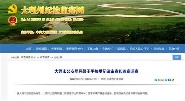 6686体育讯 据大理州纪检监察网消息:大理市公安局两名民警接受纪律审查和监察调查。