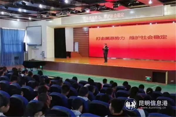 6686体育讯 记者合宇聪 “哪些属于‘黑势力’”,“哪些属于‘恶势力’”,如何保护好自己……2月25日上午,昆明市公安局高新技术产业开发区分局科医路派出所应邀到高新一小海源校区、高新第一实验中学参加两校2019年开学典礼,向两校师生宣讲了扫黑除恶专项斗争相关知识。