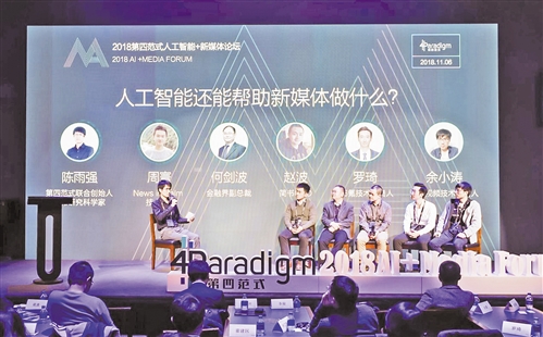 在“2018第四范式人工智能+新媒体论坛”上,嘉宾正在讨论人工智能对传统行业的改变。(资料图片)
