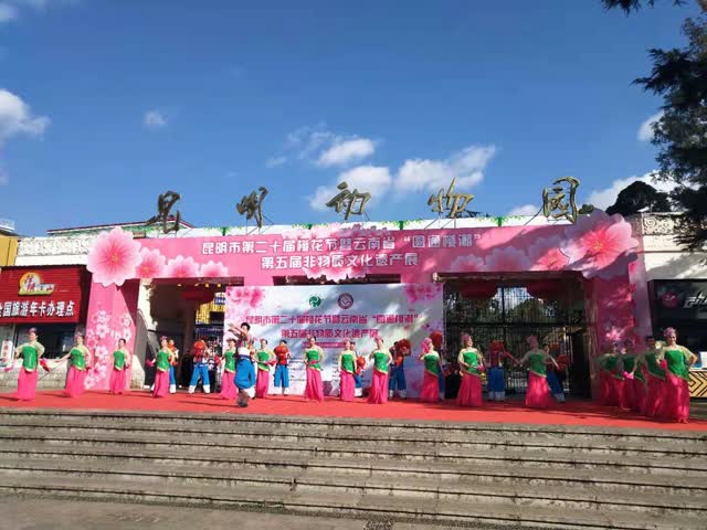 非物质文化遗产实物作品展的时间2019年3月1至31日,地点在昆明动物园樱花区“非遗展示馆”,内容有昆明剪纸、呈贡剪纸,通过技艺传承人灵巧的双手用剪刀和彩纸展现春回大地、盛世中华的繁荣景象,同时也创作出日常生活中老百姓喜闻乐见的节庆欢乐场景。3月1至10日期间,在装饰一新的樱花广场樱花巷内,通过非遗传承人的双手,将葫芦雕绘、汉藏皮雕、剪纸、剪影、安宁扎染、嵩明面塑、宜良竹编、昆明糖画糖塑、七甸老酱、宜良烧鸭、呈贡豌豆粉、寻甸干巴、官渡饵块、昆明小吃豆花米线等云南丰富的非物质文化遗产直观地展示在游客面前。