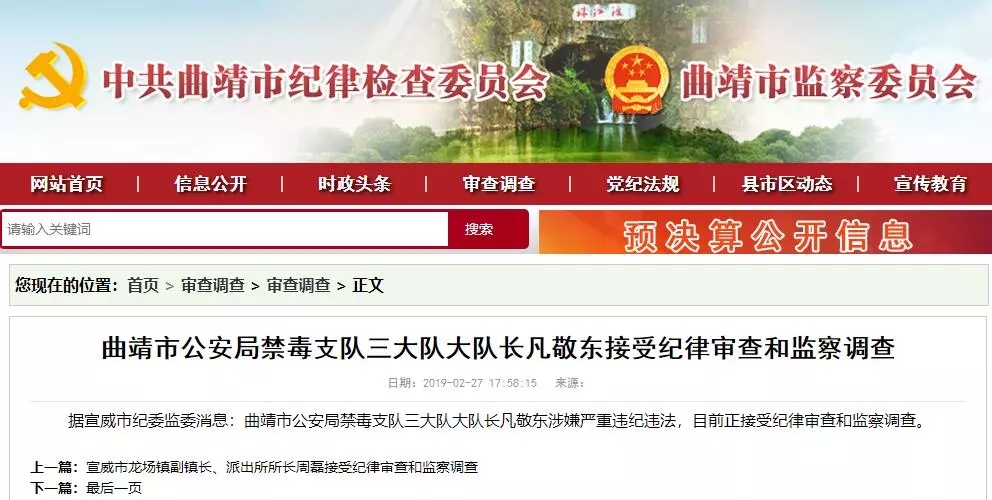 曲靖市公安局禁毒支队三大队大队长凡敬东涉嫌严重违纪违法,目前正接受纪律审查和监察调查。
