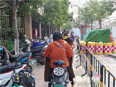 在化工协会至苏家村路口,施工围挡了近一半的非机动车道和三分之二的人行道。上午8点,随着早高峰来临,交警用锥桶临时划出了一条3米宽的车道,路口交通志愿者也手持警示灯进行着交通引导,交通状况良好,未形成拥堵。而在昆明市外国语学院门口,由于人车混行等情况,造成了一定程度的拥堵。学校安保人员也参与到了疏导的队伍中配合交警疏导,缓解了拥堵状况。