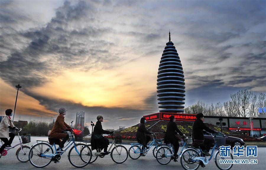 市民在河北雄安新区容城县县城道路上骑行(2018年3月29日摄)。新华社记者牟宇/摄