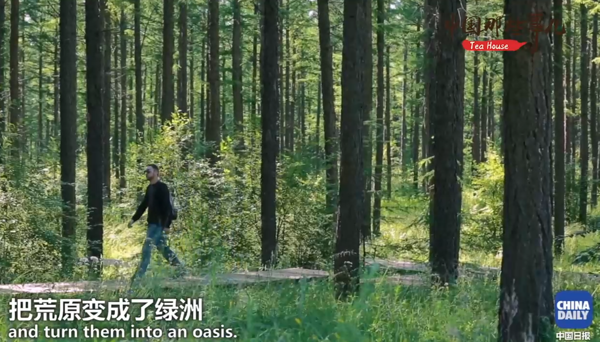 肖恩提到的是中国解决沙漠化问题的一项浩大的工程--“三北防护林”,现在大家对其中的一个地名一定是耳熟能详了。2017年8月,China Daily在YouTube 上发布“两代人用55年在塞罕坝建造了世界上最大的人工林”的视频,视频介绍称,从1962年起,第一代林场工人们克服千辛万苦,在荒凉的高原上栽下树苗,把荒原变成了绿洲。
