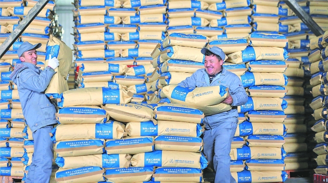 1月22日,新疆中泰化学股份有限公司转移就业人员阿卜杜拉·喀日(右)与依卜拉音·麦图迪正在装货。 记者李瑞摄