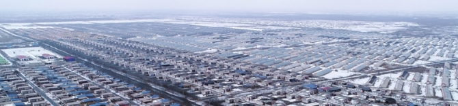 和田市吉亚乡团结新村(摄于1月31日)。团结新村已建成安居房533套,温室蔬菜大棚1150座,农民户均年收入达到5万元。