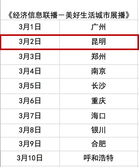 今晚(3月2日)21:05左右,央视财经频道《经济信息联播》会对咱们昆明的美好生活进行展播。同时,让我们共同期待3月7日全国“两会”期间央视财经频道黄金时间重磅播出的最终调查结果!