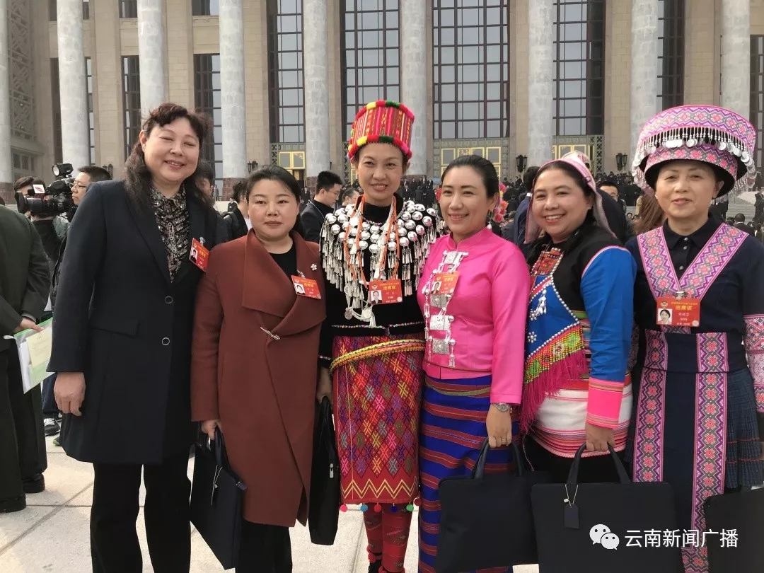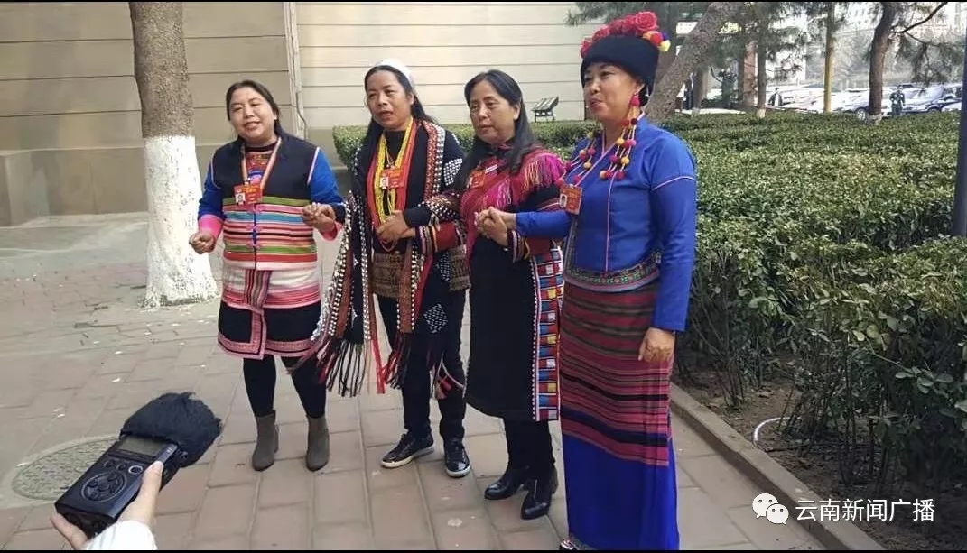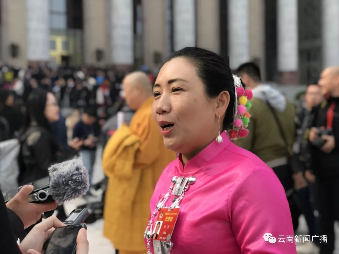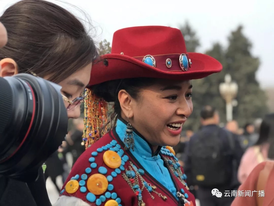 我印象最深刻的是每当咱们云南的委员们身着少数民族服饰亮相时,立马就吸引了周围媒体的目光,大家纷纷围住委员,你一言我一语询问委员:“您来自哪里?”“您是哪个民族?”“您的提案是关于哪方面的?”“过去一年您最关注的问题是什么?”委员们一一耐心细致地回答,自信的风采、真诚的回答,通过镜头、声音和文字记录了下来、传递了出去。