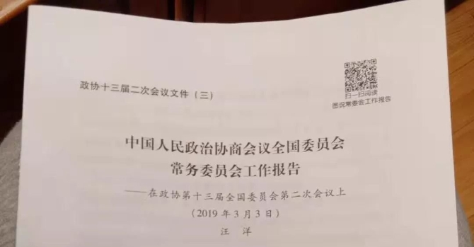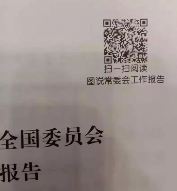 记者发现,全国政协常委会工作报告上出现一个二维码↓