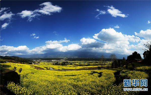 油菜花海成为了当地发展生态旅游、乡村旅游、促进农旅融合的自然资源。 新华网发 刘正凡/摄