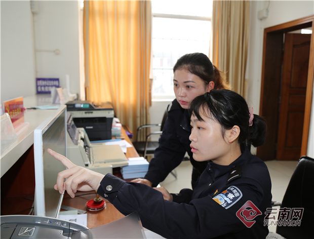 随着公安现役部队改革,脱下橄榄绿、换上藏青蓝的余月萍依然初心不改,服务在群众工作第一线。2月26日,都龙镇坝保村委会村民田有继在前往广东打工途中,不慎丢失了身份证。田有继心急如焚,便打电话向派出所咨询补领手续。余月萍理解来回奔波的难处,通过云南省“一部手机办事通”政务服务平台,一步步教他办理异地申领手续,并及时通过了审核,帮田有继解了燃眉之急。