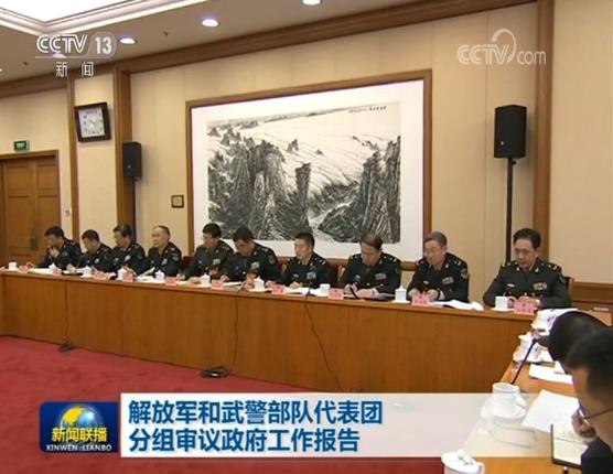 解放军和武警部队代表团5日下午分组审议政府工作报告。