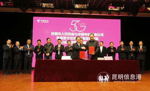 昆明市人民政府与中国电信云南公司签署战略合作协议,共同推动5G试点智慧昆明建设(供图)