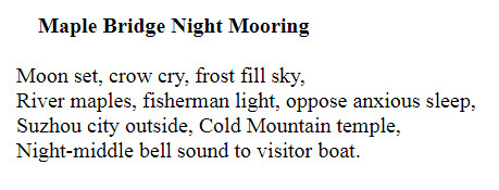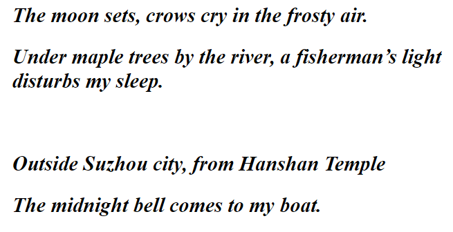 最近,这首我们耳熟能详的《枫桥夜泊》在加拿大网友中火了一把,还出现了多种英文翻译版本,比如: