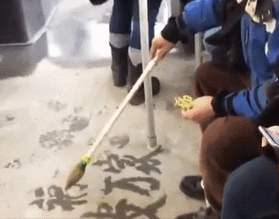 用毛笔蘸水在地上写书法,中国网友们可能有点见怪不怪了。但加拿大网友们则被中国的书法和古诗惊艳到了。