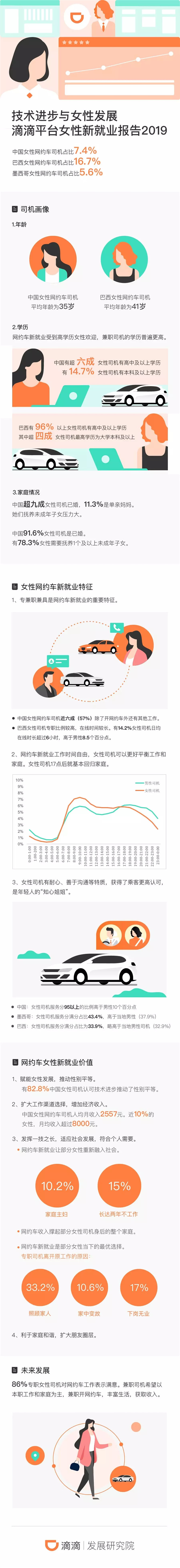 6686体育讯 记者江枫 在“3·8”国际老劳动妇女节来临之际,滴滴发展研究院发布《技术进步与女性发展:滴滴平台女性新就业报告2019》,期待更多人关注女性网约车司机群体,关注技术进步在赋能女性发展上的作用。