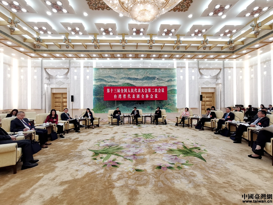 十三届全国人大二次会议台湾省代表团举行全体会议并向媒体开放。(中国台湾网 尹赛楠 摄)