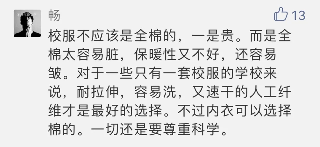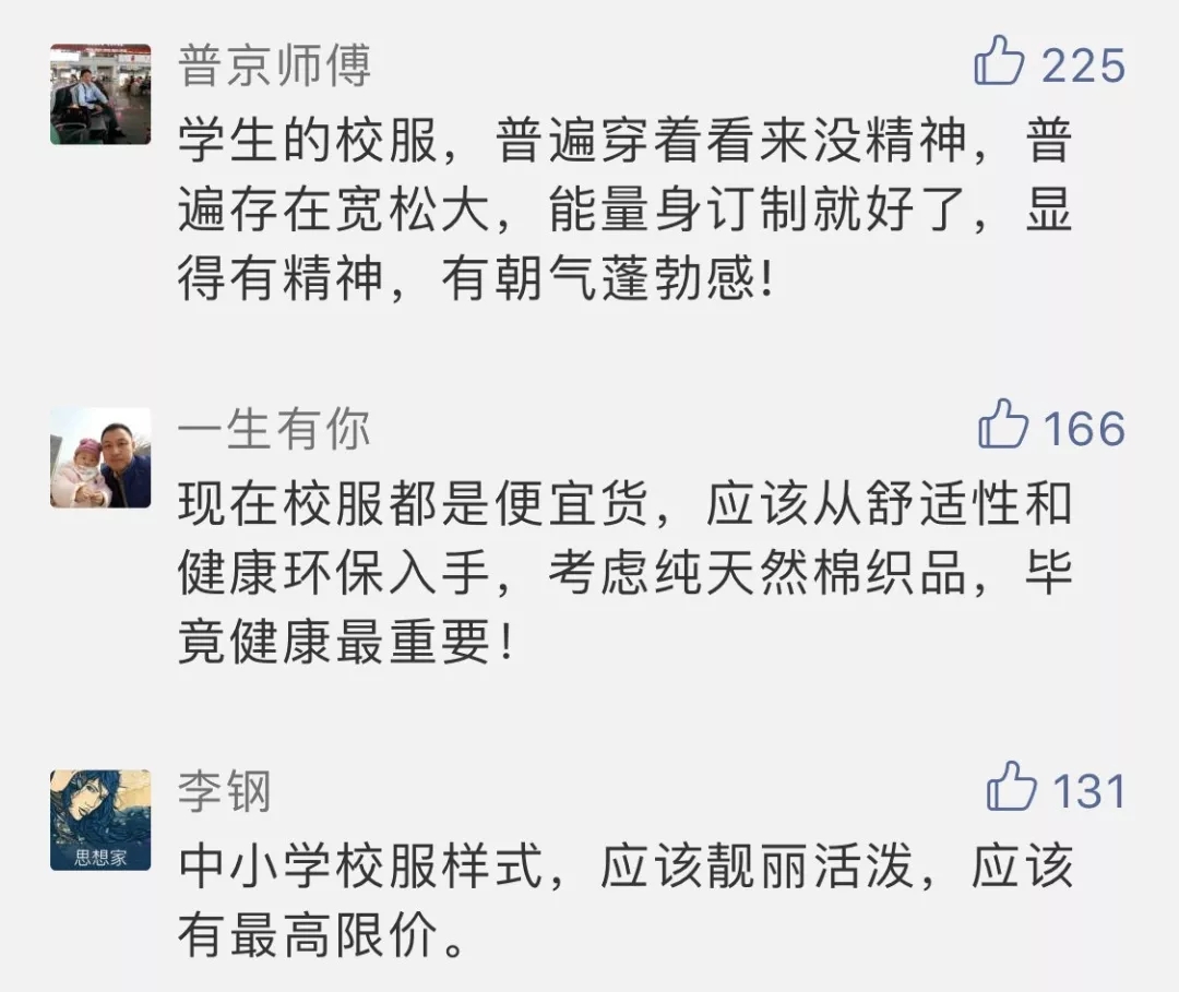 《提案》建议:在改进校服美感帮助中小学生增强文化自信的同时,应重点破除限价及“地方保护”,让更多学生和家长拥有选择“优质优价”校服的权利;同时,还需加强功能面料开发与校服款式设计,深化质量管理,斩断“劣质校服”流入校园的通道。